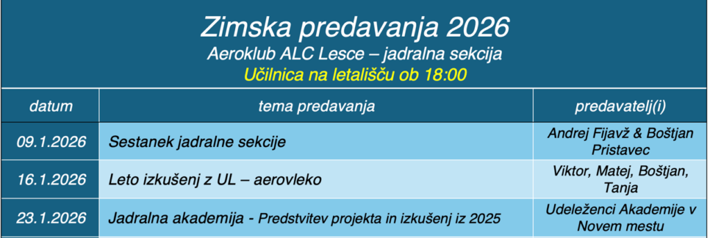 Čas, ko letalska sezona še miruje, je idealen za izobraževanje. Zato vas vabimo ta petek, 9. 1., ob 18.00 na naše prvo zimsko srečanje.